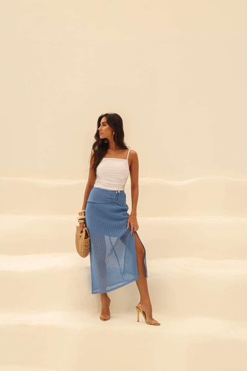A Saia Silmara traz um toque fresco e moderno para o seu guarda-roupa. Ideal para quem busca estilo aliado a conforto. Feita em tecido delicado e transparente, a saia apresenta comprimento midi, com forro curto e transparência na parte inferior que confere sofisticação e frescor ao visual. O cós tem um botão para melhor ajuste, e a fenda na lateral facilita os movimentos e adiciona um detalhe de estilo.